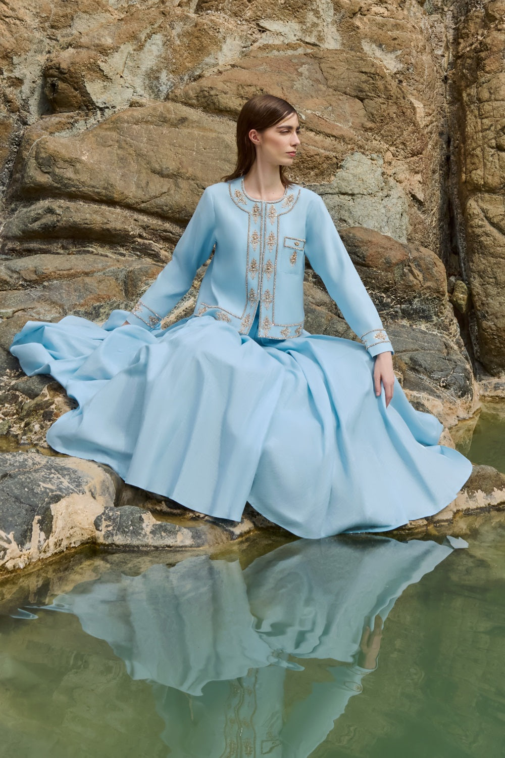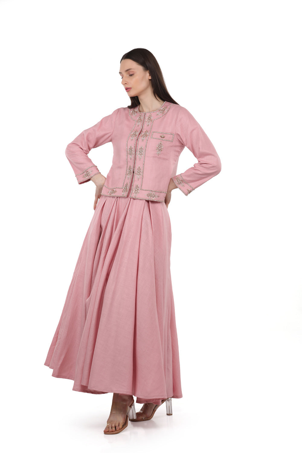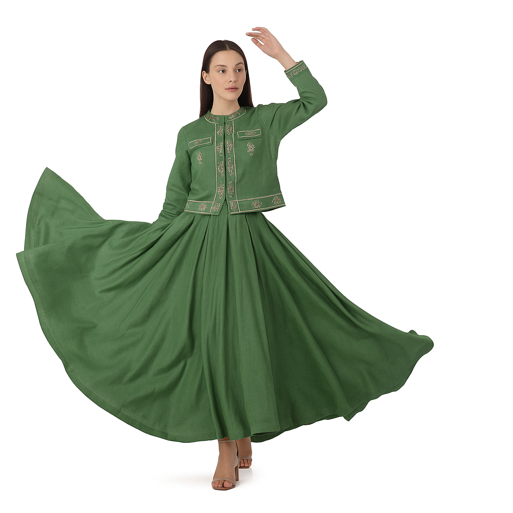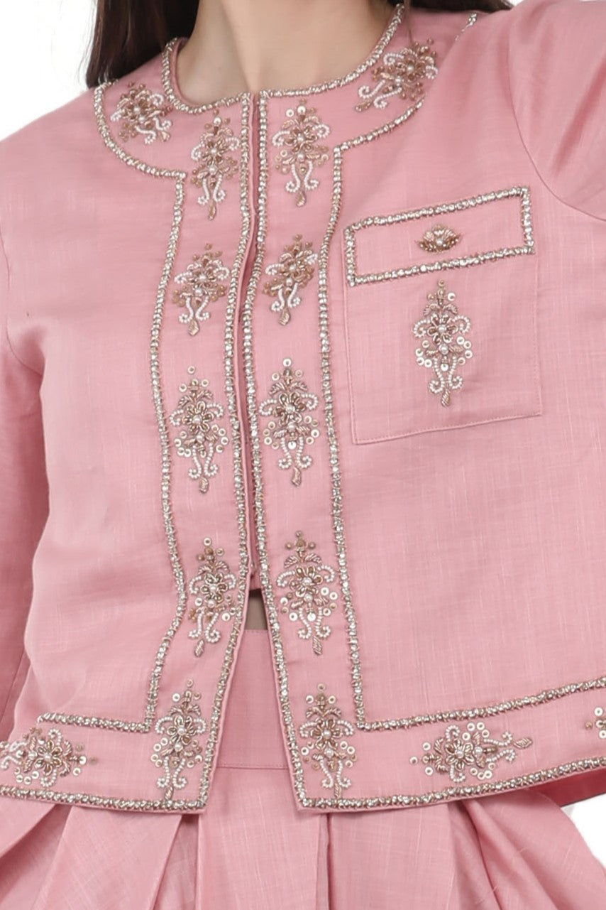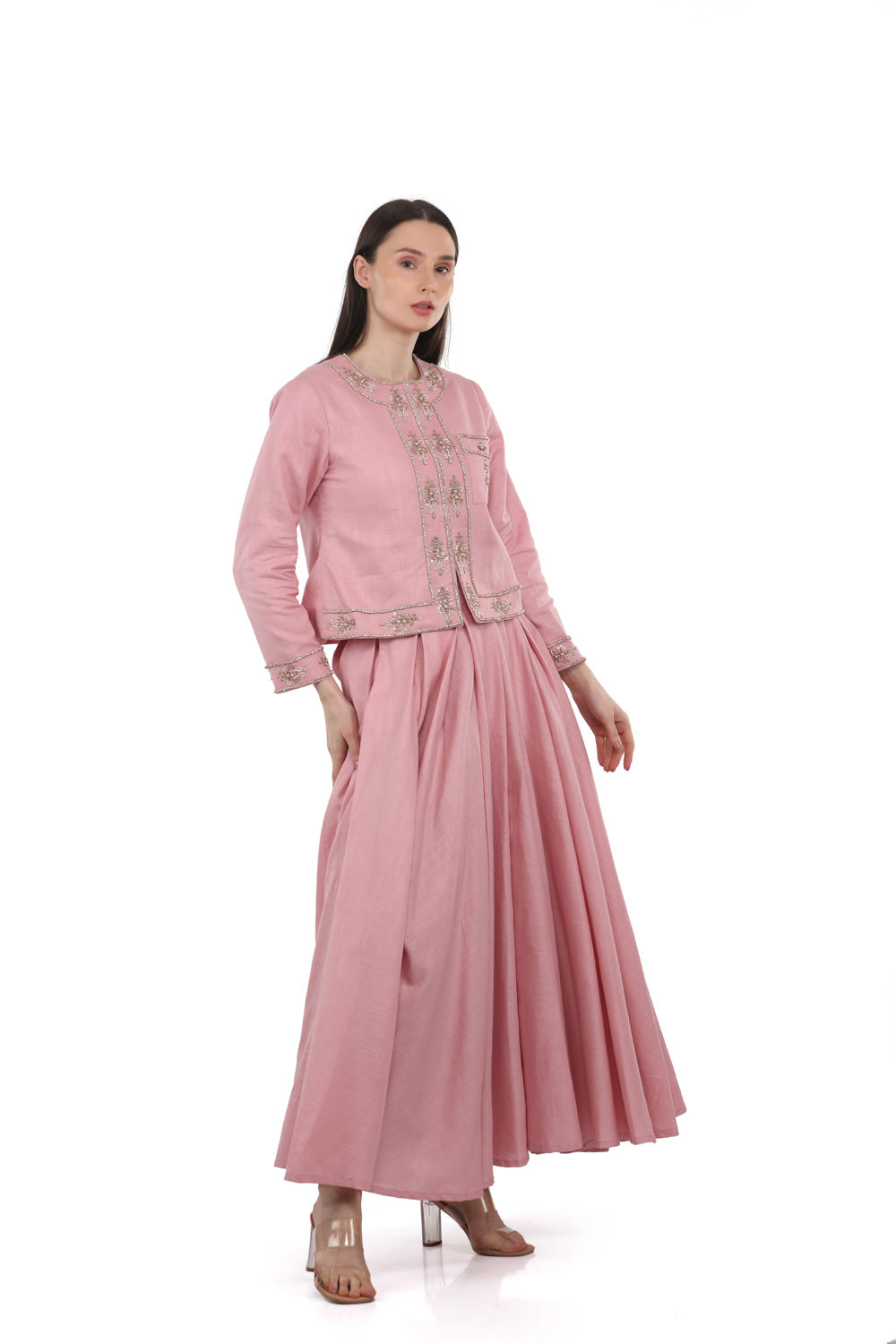 الوصف : سترة مزينة مع تنورة مطوية مربعة