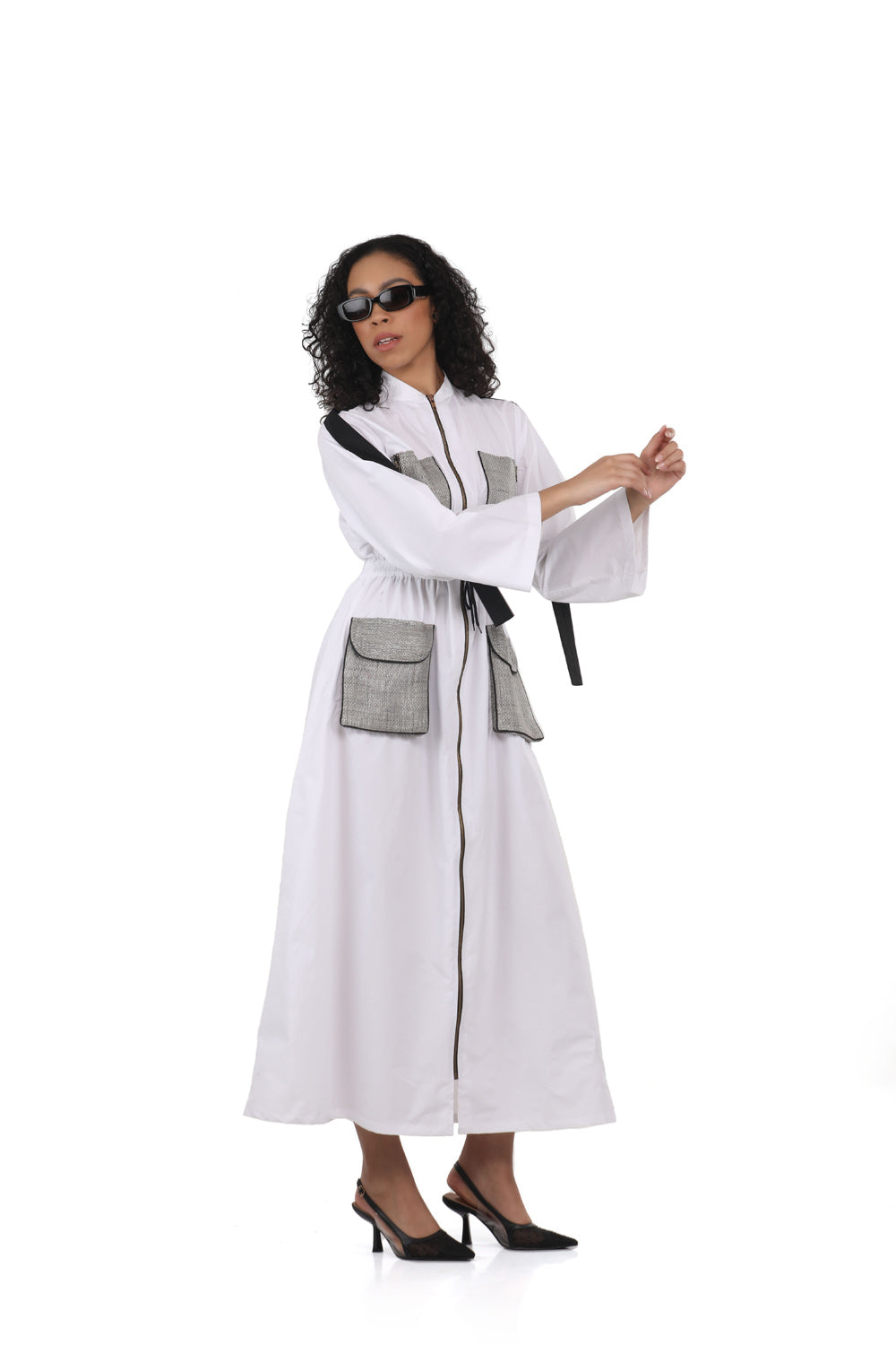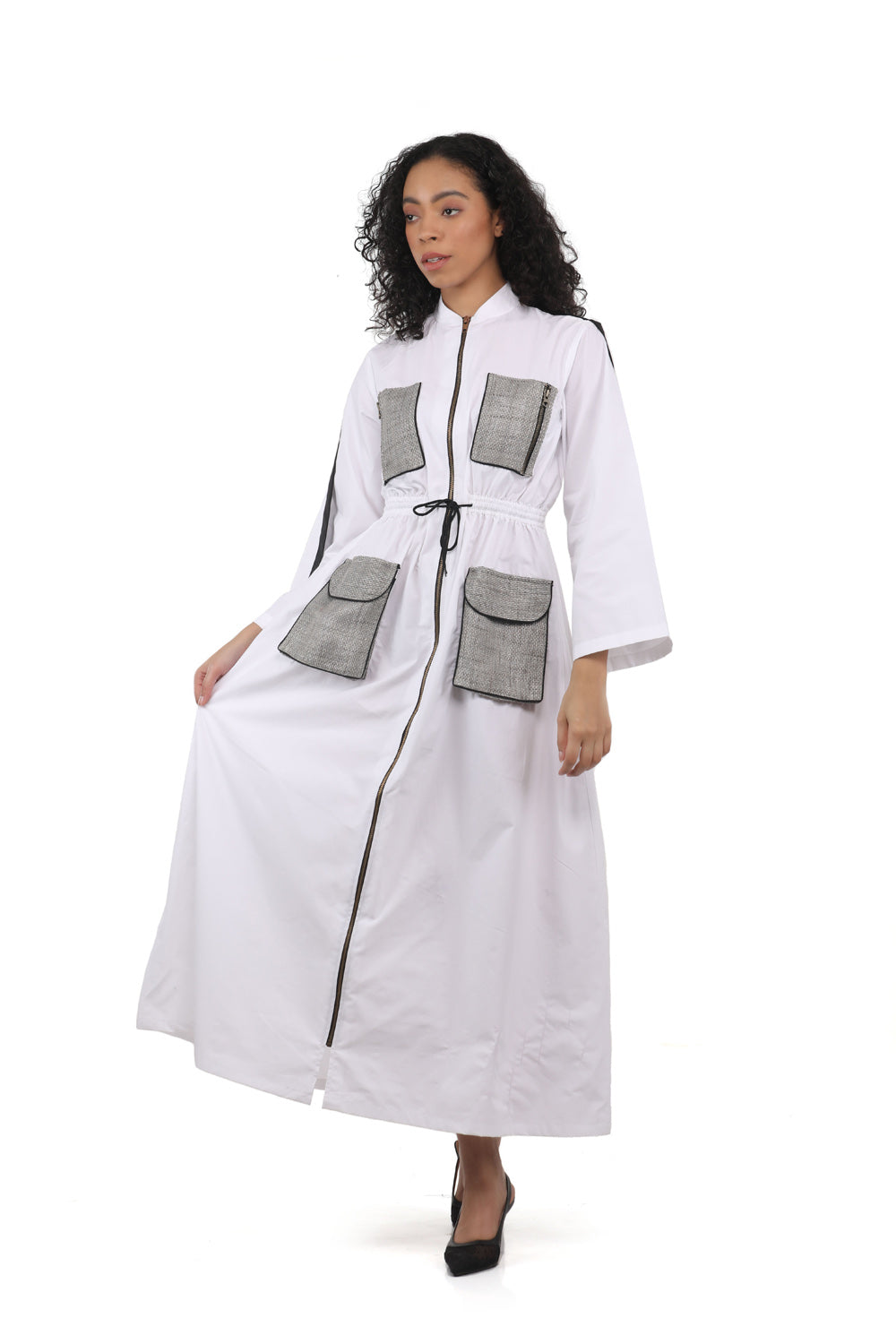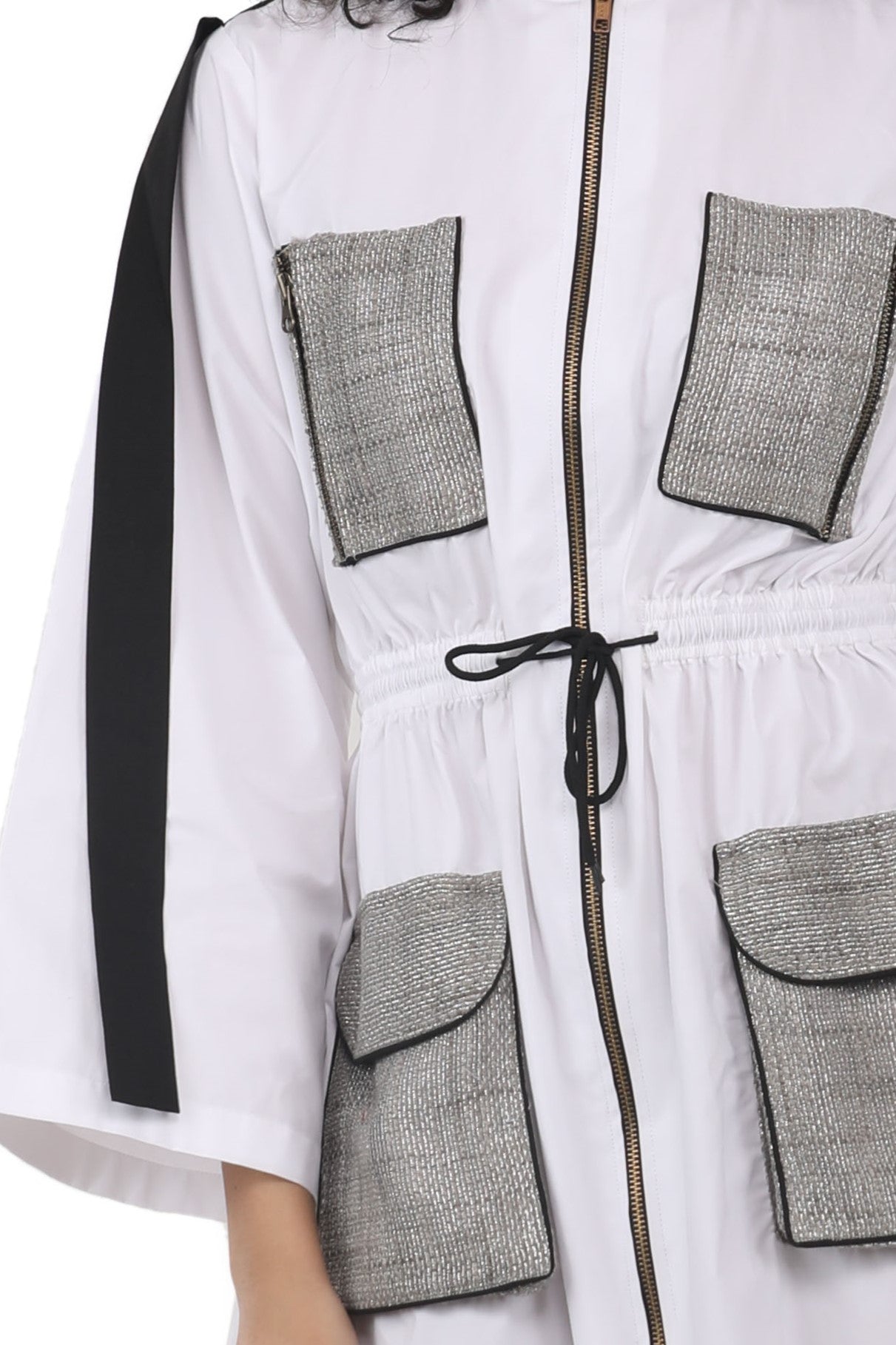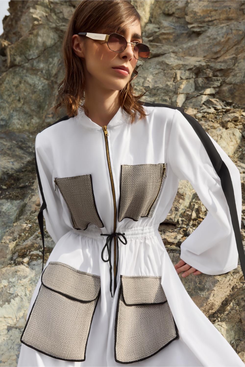 الوصف : سترة طويلة على شكل قاذفة قنابل بسحاب أمامي وجيوب مبالغ فيها